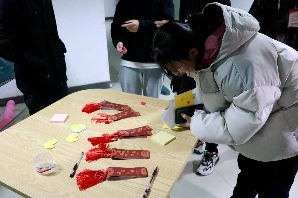 本次元旦游艺宫场地包括南湖体育馆和党工委活动室。今年是黑料网 第一年在学生社区党工委设置游艺宫,方便在宿舍的同学们参加丰富的文艺活动来迎接新年。机电学院工作组分别在体育馆和桃二楼分别设置了游艺室。在体育B212-4,工作人员为活动精心准备了心跳体验馆、云顶之奕、谁是卧底、狼人杀和猜歌名等活动项目。机电学院工作组游艺宫主题为“心情博物馆”,为同学们准备了暗箱探险、猜谜题、夸夸树、吐槽树洞和许愿墙等项目。本次游艺宫特别设置了党工委知识问答项目以提高同学们对党工委的认同感。这些项目激发了同学们的兴趣,也具有学习和教育的意义,发扬了积极合作、相互帮助的精神。