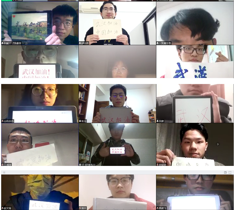 2020年3月7日星期六晚七点,机械工程2017-7团支部于线上举行了集体观影活动,让同学们写下祝福的话语,以集体拍照的形式为武汉声源。