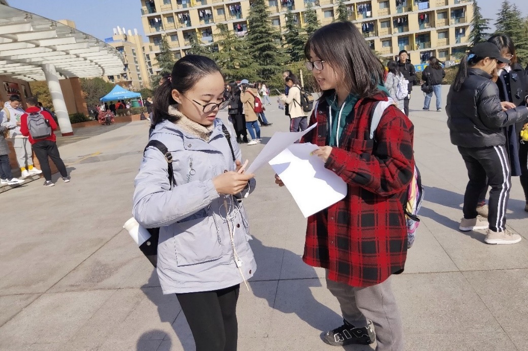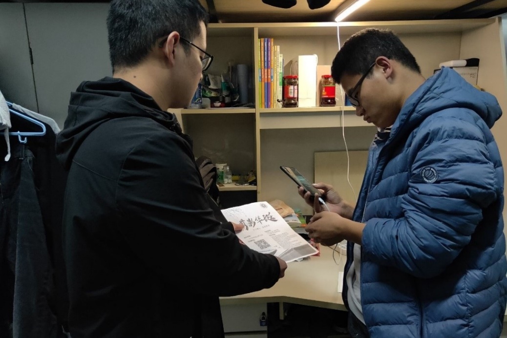 志愿者在宿舍进行宣传