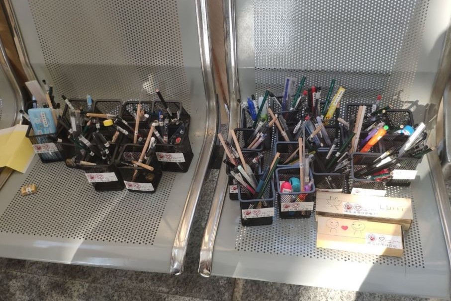 流动文具驿站顺利设立,之后会寻找志愿者定时对驿站进行维护和日常管理。