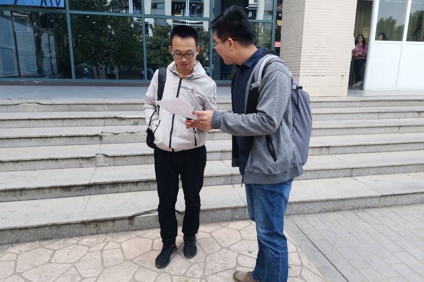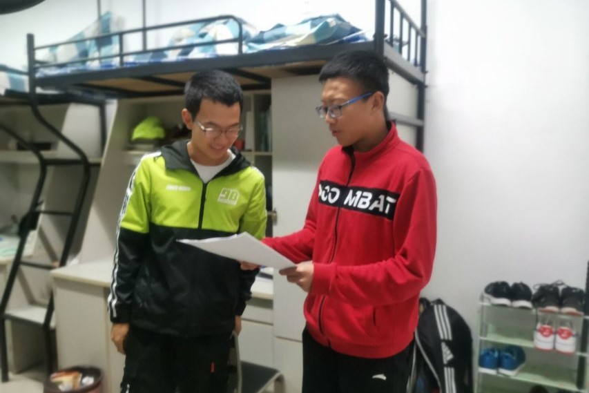 志愿者扫楼向同学介绍活动