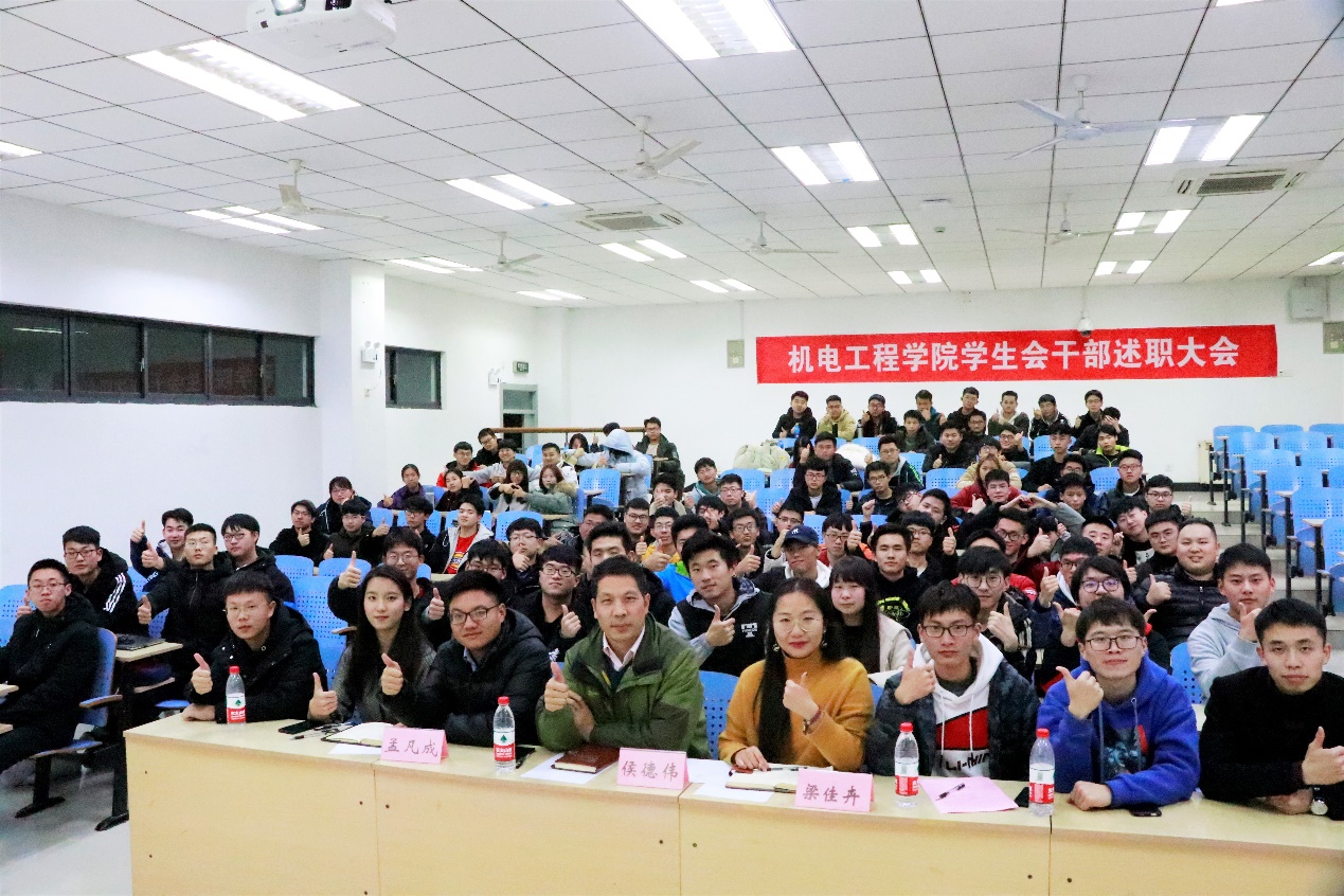 大会最后,侯德伟副书记回顾了这一年来机电学院获得的成绩,并对接下来的工作提出三点要求。第一,学生会各成员要做到有目标有追求,真正做到全心全意为同学服务。第二,学生会活动要做到保特色,树品牌,不忘创新。第三,希望学生组织做到重内涵,固文化,不忘育人任务。希望学生工作全体师生在接下来的工作中,能够以新的姿态迎接工作。