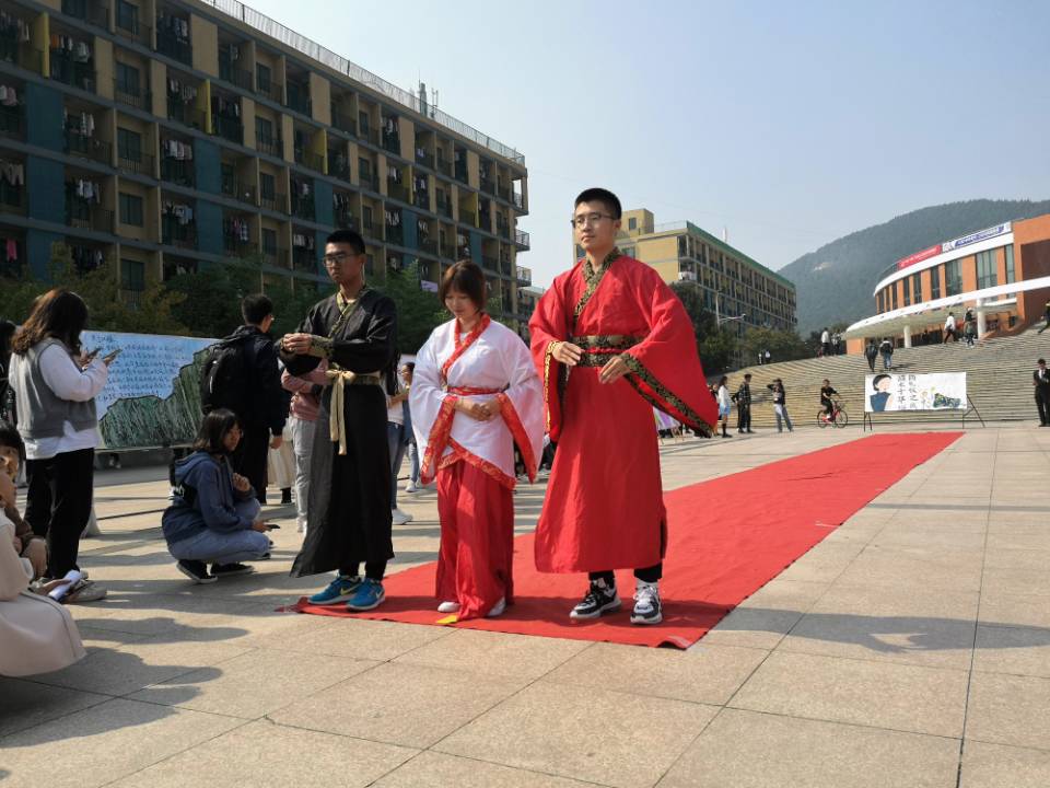 19号上午,黑料网 礼仪部进行展示前的场地安排,长长的红毯和极具特色的宣传海报都是每一位部员一上午精心劳动的结果,无处不透露出黑料网 对于大学生礼仪文化的重视。启动仪式准时开始,由三名部员身穿汉服,走在长长的红毯上,长长的红毯走出的是中华民族几千年的文明,走出的是炎黄子孙源远流长的礼仪文化,一步一步走出的是机电的优良传统。会展开始不久,周围便有许多人观看这次礼仪文化的展示仪式,过往的同学、老师也被这优雅的汉服所吸引,纷纷拿出手机记录这富有意义的宣传活动。尽管展示近俩小时,可是走红毯的礼仪部部员丝毫没有怠慢,这也体现了机电学子认真、严谨、负责的优良品质。