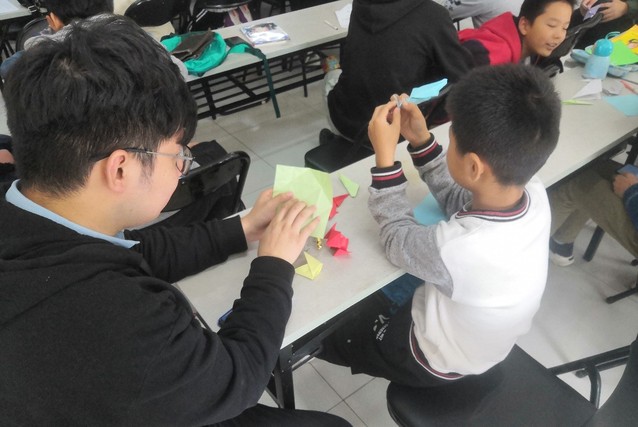 随后,志愿者对孩子进行一对一课业辅导。在完成之后,志愿者们开展了特色“纸艺小课堂”,和孩子们一起折纸,让孩子们领略纸艺的魅力。现场气氛活泼有序,孩子们很开心。负责人表示认同:“他们来这里,学习到了新东西,了解到了新知识,他们很开心,我们也应当这样去做。”