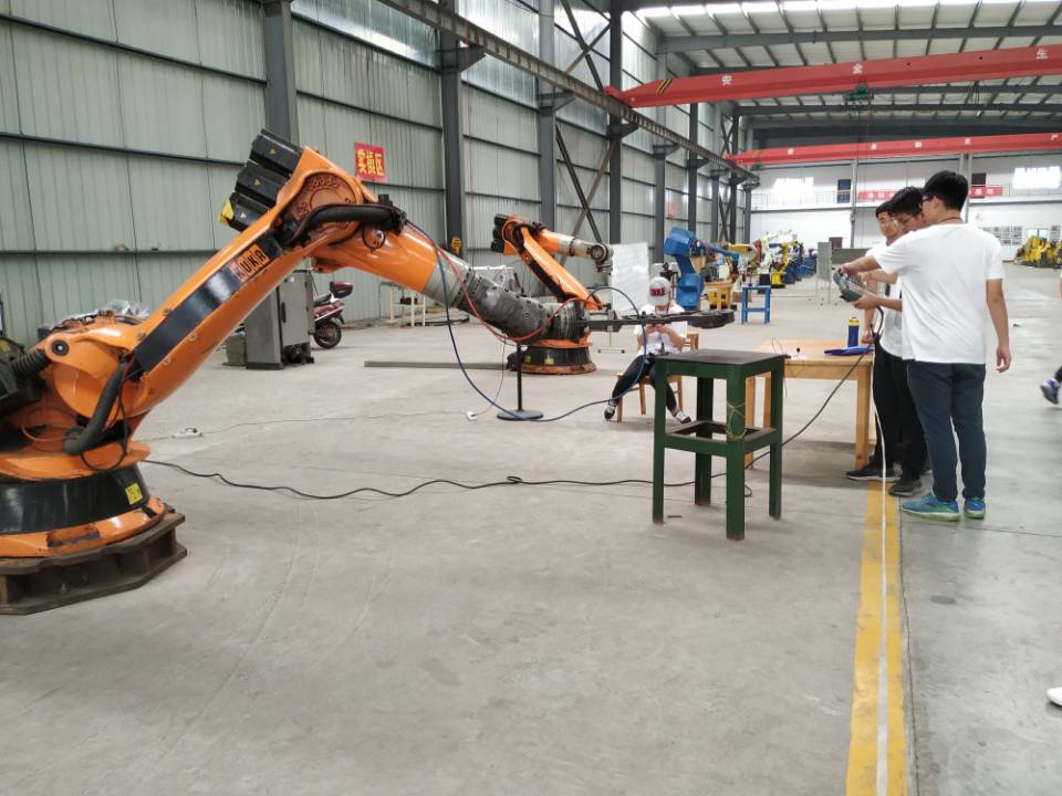 沃德福员工向卓越班师生讲解机械臂工作原理