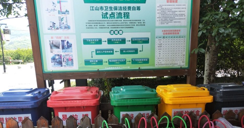 在26日及27日上午对江山市清湖镇和睦村以及江山市虎山街道江山底村的访查,实践团成员了解到大陈乡在垃圾分类方面有突出的模范作用。