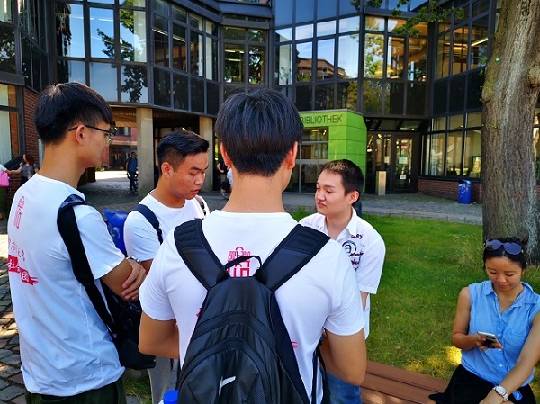 进入杜伊斯校区后,实践团成员们在图书馆前对当地的学生进行了采访调查,询问德国大学生在学习生活上的一些情况,与国内大学生的学习生活情况进行对比,并就此与当地大学生交流看法。在采访调查的过程中,实践团也对杜伊斯堡-埃森大学杜伊斯堡校区的教学区、生活区等进行了参观。