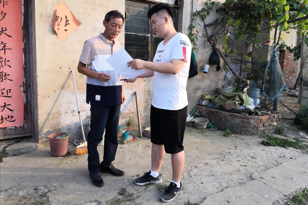 在矿南村发放问卷