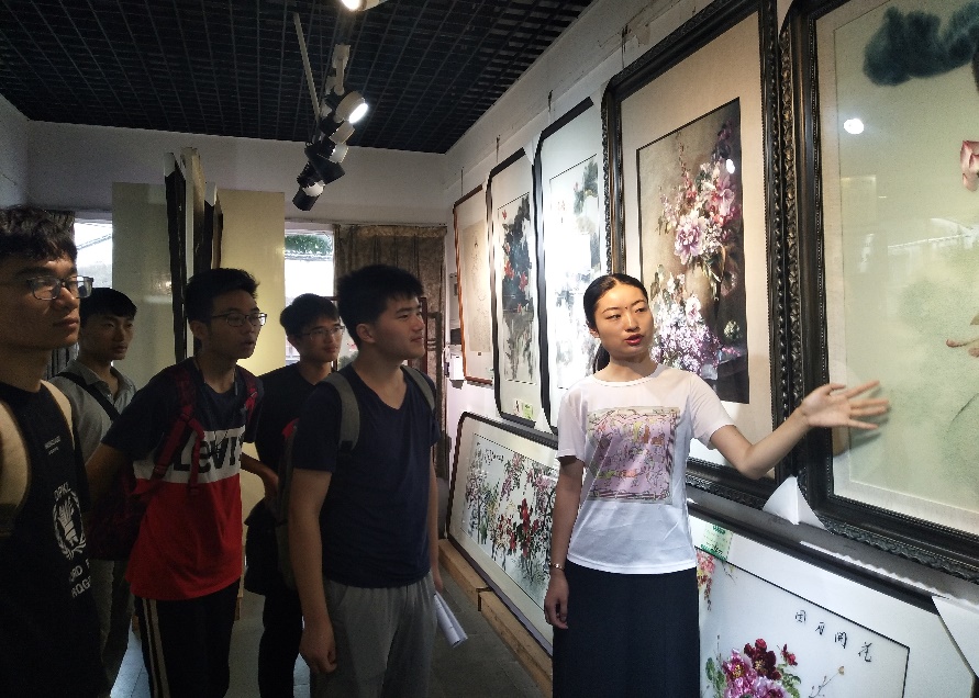 7月14日,实践团一行人又来到了卢福英苏绣艺术展示馆。卢福英女士是优秀的苏绣传承手工艺人,卢福英女士不但在继承我国传统的刺绣手工艺领域作出了突出贡献,并且在传承、创新和发展苏绣艺术方面发挥出了积极的作用。