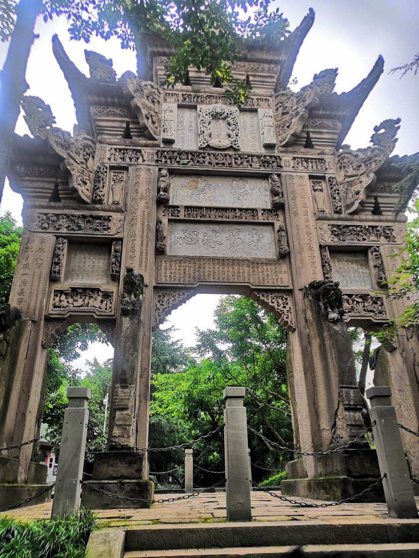 民俗村内,随处可见为丰富村内景致,颇具匠心点缀其间的各种建筑,建于清代的高大雄伟的节孝牌坊,横跨水面连接大门与牌坊的“泰山石敢当”。这些传承着巴渝文化的建筑和器具,静静地待在那里,一言不发,却向调研团展现了来自于这座山城的独特魅力,展现了重庆人民在历史的进程中描绘巴渝文化的美丽书卷。