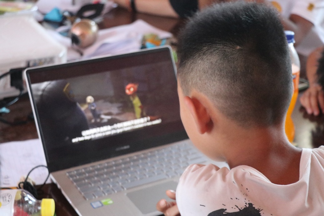 7月18日下午,在短暂的午休后,“青”心支教团英语课负责人给孩子们带来了趣味英语课。课上,英语课志愿者老师播放电影《疯狂动物城》。孩子们在看有趣电影的同时,不仅被卡通人物逗得捧腹大笑,还学习到了英语单词的发音。最重要的是影片所呈现的教育意义,影片其中的“兔子警官”让孩子们知道了“只要有坚定的信念、勇往直前的信心,生活也会展现给我们这道山前必有路的坦途”。随后,“青”心支教团机器人老师先给孩子们介绍了机器人的简单知识,之后展示了机器人翻跟头,跳舞等动作,这不仅激发了孩子们的好奇心,也在孩子的心中种下了一颗科技的种子。机器人老师分别从“什么是机器人”、“机器人用来干什么”、“机器人未来会是什么样子”这三个问题让孩子们了解到了未来机器人的作用与发展趋势。相信通过本节课的学习,孩子们可以更加相信科技的力量,也能够更加努力学习。