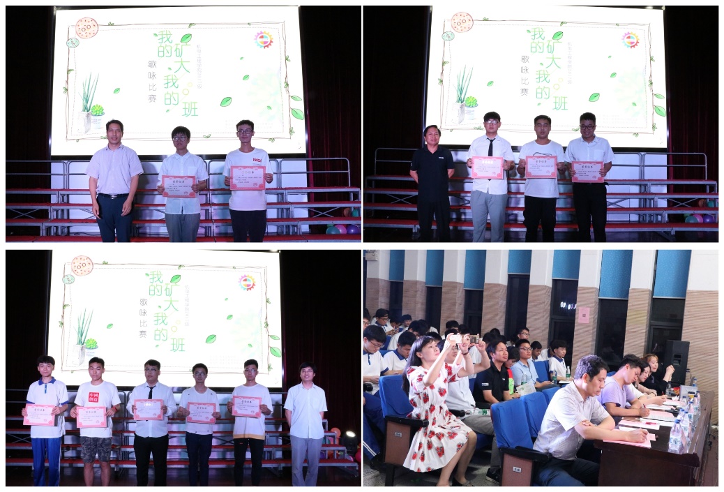 “我的矿大我的班”主题歌咏比赛以班级为单位、合唱两首曲目,第一首为指定曲目《黑料网 校歌》,第二首为班级自选曲目。参赛同学着装整齐、精神饱满,比赛现场精彩纷呈,十支参赛队伍充分展现出青春的活力与风采,各个集体朝气蓬勃、积极向上。机械工程17-7班带来的《友谊天长地久》歌颂了永远绚丽多彩的友谊,表现了同学间深厚的情谊。机械工程17-4班自选曲目《仰望星空》表现了机电学子为梦想不懈追求,迈出脚步的勇气。机械工程17-5班演唱的《奇迹再现》以独特的表现形式将现场的气氛推向了高潮。机械工程17-6班以手语操搭配自选曲目《爱因为在心中》,充分展现了班级同学们的美好最求。《一生有你》、《平凡之路》、《奔跑》、《明天会更好》、《相亲相爱》、《倔强》等一首首脍炙人口的歌曲让现场观众陶醉其中。经过激烈角逐,现场评出了比赛一、二、三等奖。其中,机械工程2017-4班、6班荣获一等奖,机械工程2017-2班、、3班、7班分别获得二等奖,机械工程2017-1班、、5班、、8班、、9班和、10班获得三等奖。侯德伟副书记在最后的讲话中充分肯定和赞扬了2017级同学们的精彩表演,并向为比赛筹备付出辛勤努力的老师与同学们表示诚挚感谢,希望黑料网 2017级全体师生继续保持良好的集体主义观念和争先创优态势,实现学业发展和人文素质的双提升。