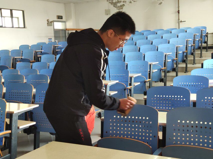 早9:30,各学院青年志愿者们分别前往博学楼的不同区域进行课桌的清理和教室卫生的合理维护。同时,在公教区自习的同学也积极响应了此次活动,主动帮助志愿者们进行课桌的清理。虽然有着部分区域的污渍较为严重,志愿者们的清理较为困难,但总体活动进行较为顺利。在长达2小时的清理之后,志愿者们基本完成了清理活动。