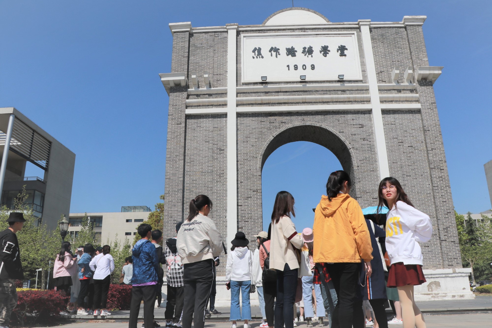 春风浩荡满目新,不负韶华万里程。两校同学准时齐聚在矿大南湖校区校史馆前,经过简单的交流互动,同学们按小组划分、列队参观矿大校园。漫步在历史悠久的青石路上,沐浴着灿烂明媚的阳光,穿过巍峨雄伟的焦作路矿学堂大门,青春的欢声笑语伴随110年前的历史风尘,穿越时间,一路前行、直到今天,仍清脆响亮。镜湖之上,我们与天鹅嬉戏;图书馆旁,我们共读一卷;不显山脚,我们踏歌而行。在感受矿大悠久历史的同时,我们敞开胸怀,拥抱春天,将美好的景致尽收眼底。