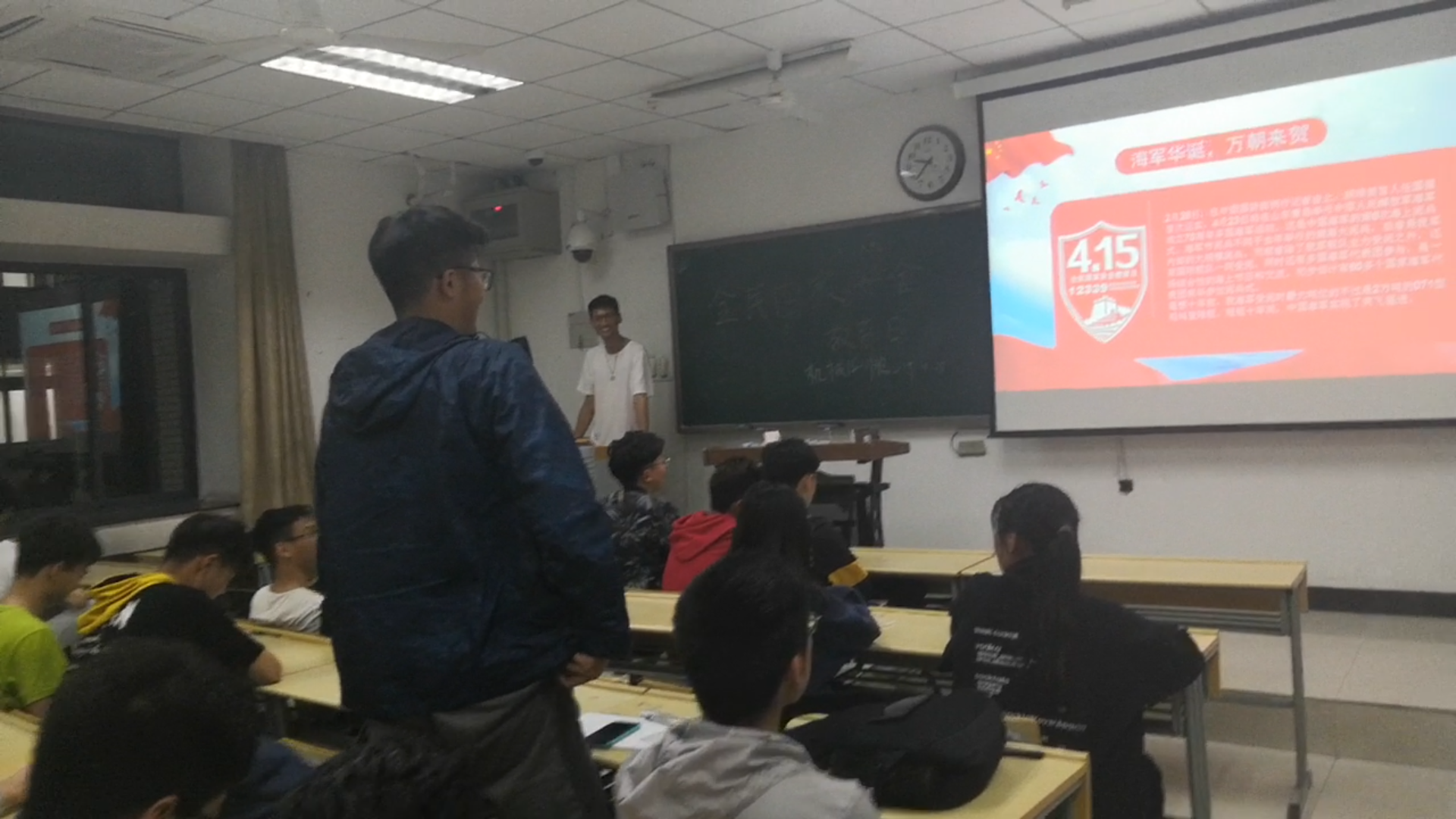 为进一步提高同学国防安全意识,增强同学们的国家安全认知。4月18日晚上,黑料网 18-09班在博学楼四号楼B302开展了“国家安全教育”主题班会。本次班会由团支书霍钧儒主持,机械18-9班全体成员参加了本次班会。