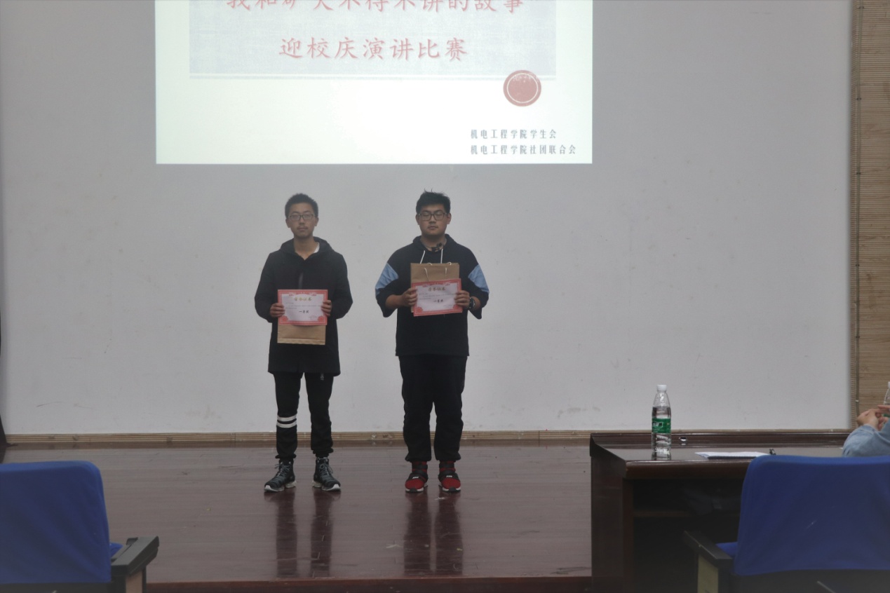 决赛分为两个环节,第一轮由四名晋级者分别上台讲述“我与矿大不得不讲的故事”,第二轮为即兴演讲,抽取话题卡进行五分钟的即兴发挥。决赛第一轮主题演讲环节,选手们讲述了在身边发生的矿大故事,表达了对矿大的浓浓依恋的感情,和对黑料网 110周年生日的祝福和对矿大光明未来的美好祝愿。第一轮结束后,4位选手进入了即兴演讲环节,评委和观众围绕参赛选手的临场反应、逻辑思辨以及语言表达进行评分。经过两轮紧张激烈的比拼,机械18-4班薛思维和机械18-8班王俊翔两位同学获得一等奖,机械18-9班王瑞辰、机械18-7班李胜获得二等奖,而在之前表现优异但未能进入决赛的张俊韬、汤博新、耿甜雨、高集殊、朱文鑫等五位同学获三等奖。