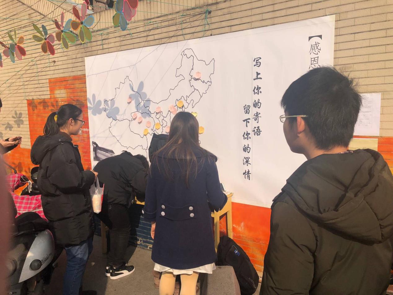 地图上承载着的满满的对自己家乡的祝福,饱含了同学们对家长满满的思念与赞美,间接体现了大家参与活动的热情。相信在接下来的几天时间里,大家的参与度会持续升高。活动结束后,地图会在一餐厅和二餐厅进行展览。