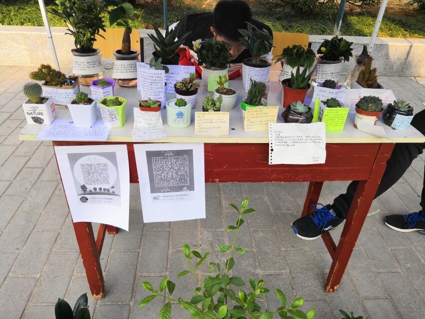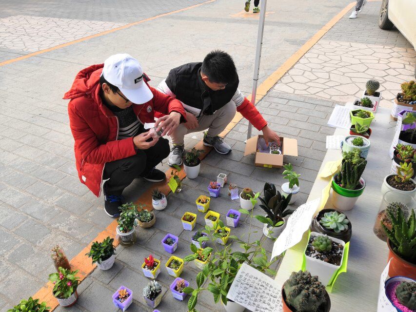 下午,更多的同学参加到了活动当中。有一部分对绿植有着一定的了解的同学专门来到活动现场,他们与提供绿植的同学们相互交流绿植的习性、分享养绿植的经验。志愿者们还将自己带来的绿植赠与同学,邀请感兴趣的同学加入绿植交流群。现场的气氛十分融洽,同学的兴趣也越来越高涨。下午4点,活动进行至结束。同学们和志愿者们纷纷表示愿意再次参与此类活动。