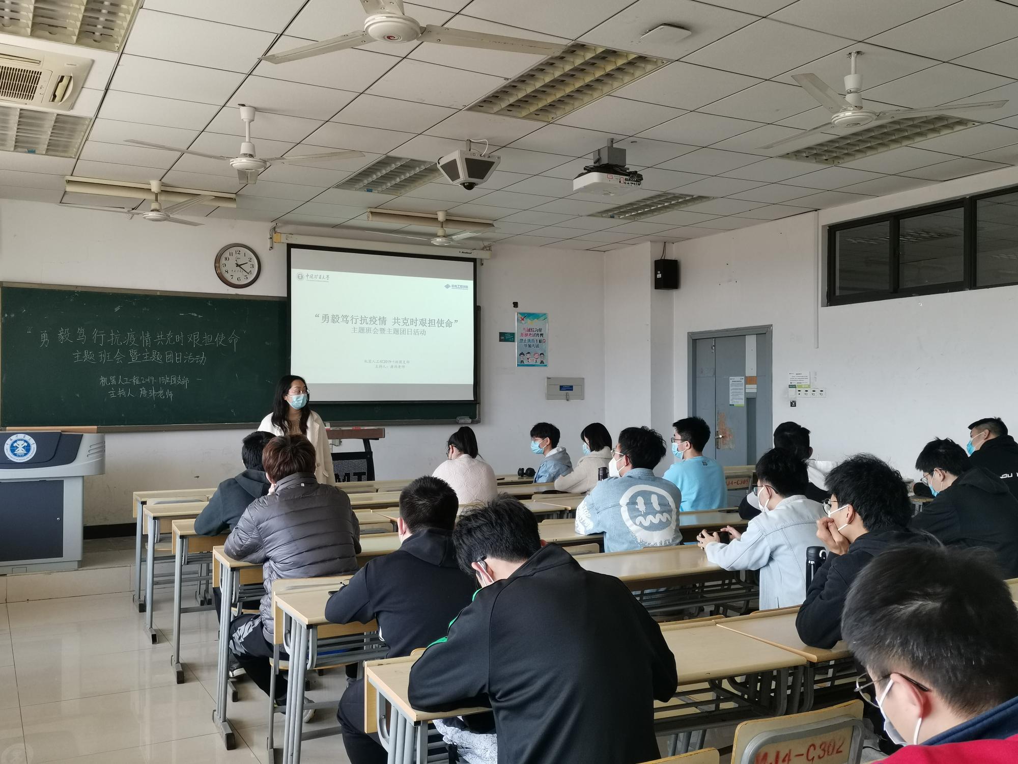为了应对新冠肺炎疫情呈现出的多地散发态势,引导同学们严格遵守疫情防控规定,树立“青春同心,抗疫有我”的信心和决心,近期,机器人工程2019-01班在博学4号楼C304教室开展了“勇毅笃行抗疫情 共克时艰担使命”主题班会暨主题团日活动。
