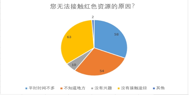 在实践后期,实践团队又积极开展了有关“红色资源利用”的问卷调查活动。受疫情影响,团队采用了功能人性化,操作灵活、方便的线上问卷调查的方式。本次调查总共收到194份结果,其中有效结果187份,无效结果7份。通过对187份有效结果的统计处理与分析,团队成员得出了以下结论:红色资源的利用还不够充分,存在若干问题。宣传力度不够大、接触途径不足、没有充足的空闲时间等都是导致当代人们无法真正了解红色历史,感悟红色精神的原因。