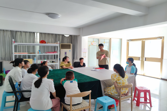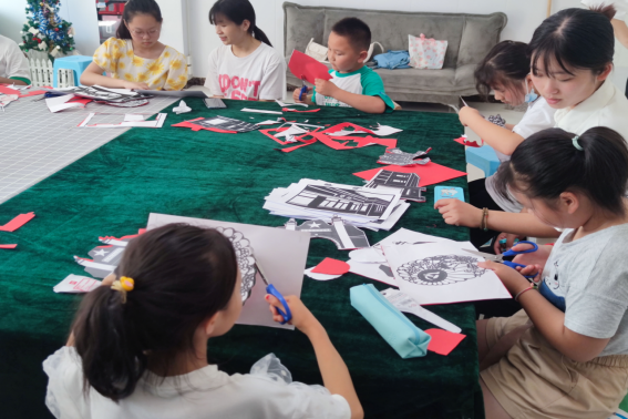 实践团成员与小朋友们一起剪纸