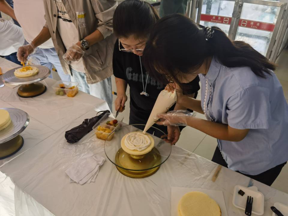 金桂飘香,中秋将至。9月3日上午,“情满中秋,幸福加焙”主题蛋糕DIY活动在桃二A区1楼举办,楼宇内学生积极参加活动。