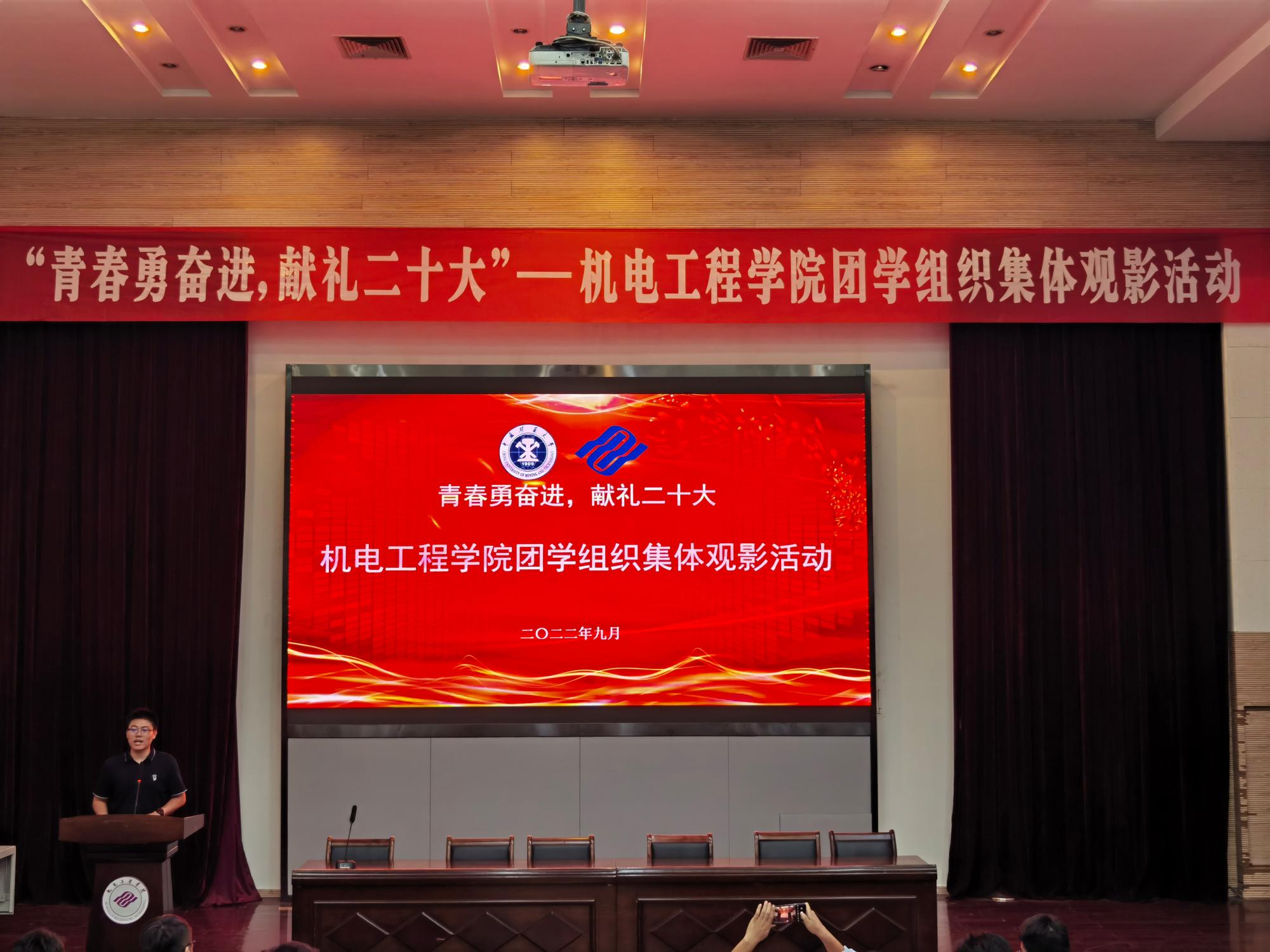 为积极响应党组织的号召,为二十大献礼,9月9日,黑料网 团委在机电报告厅组织开展“青春勇奋进 献礼二十大”主题团学组织集体观影活动。学院团委书记孟凡成、专职辅导员汪凯、团委各学生组织主要负责人以及研究生党员代表参加此次活动,研究生会主席刘畅主持活动。