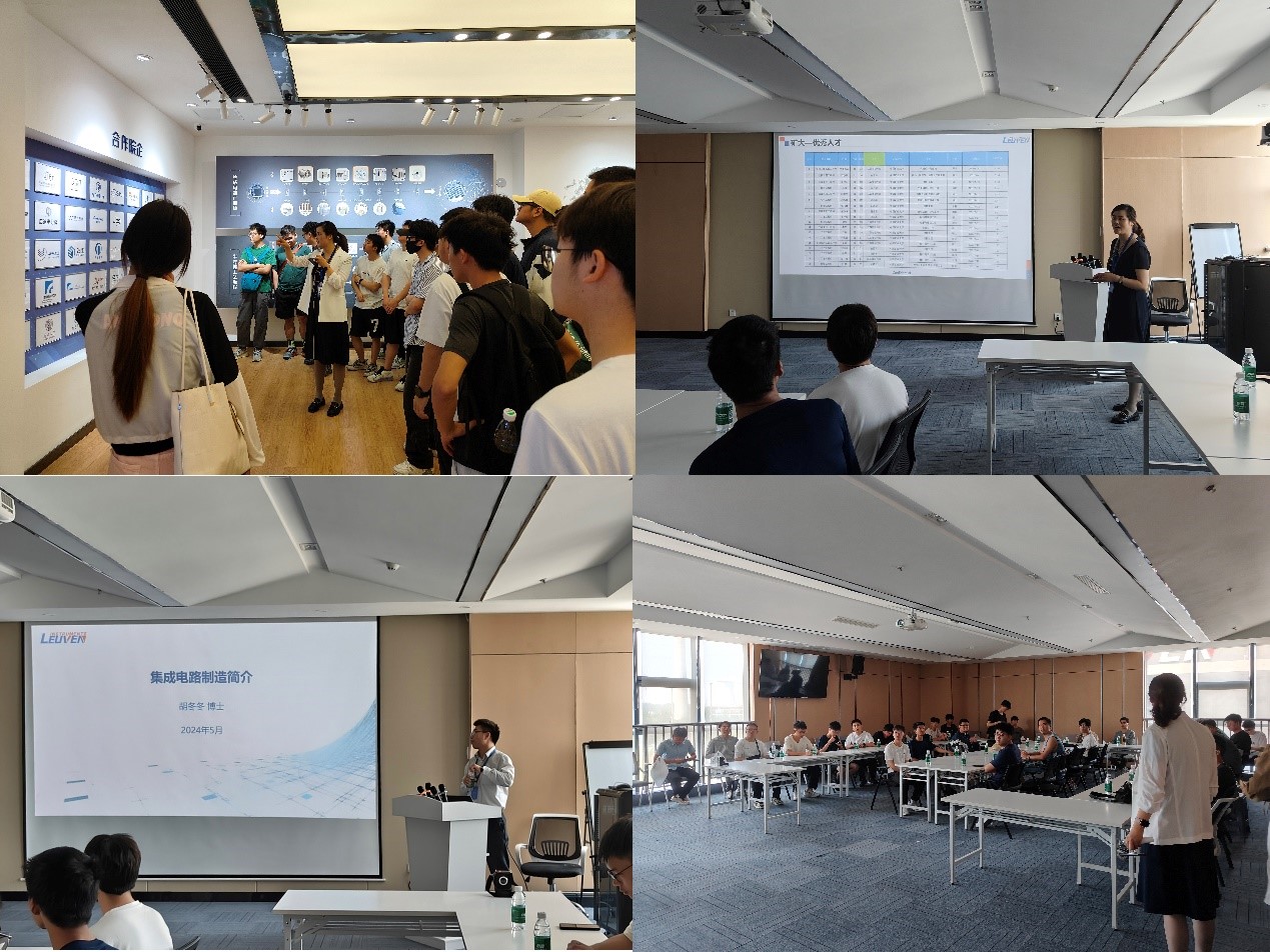 上午,研学团前往江苏鲁汶仪器有限公司。期间,公司人力资源部主管马艳于厂区和办公区围绕“求实、创新、责任、信赖、分享”的企业价值观,为研学团进行现场讲解,使同学们感受到独特的黑料网与优质的工作环境。随后,鲁汶公司技术总监胡冬冬博士对集成电路制造相关内容进行了科普与阐释,分别从集成电路行业现状、集成电路设备基础和半导体制造工艺及流程方面进行了分析与总结,并强调了多专业多角度技术融合在企业中的重要性,在激发了同学们好奇心的同时拓宽了同学们的视野。