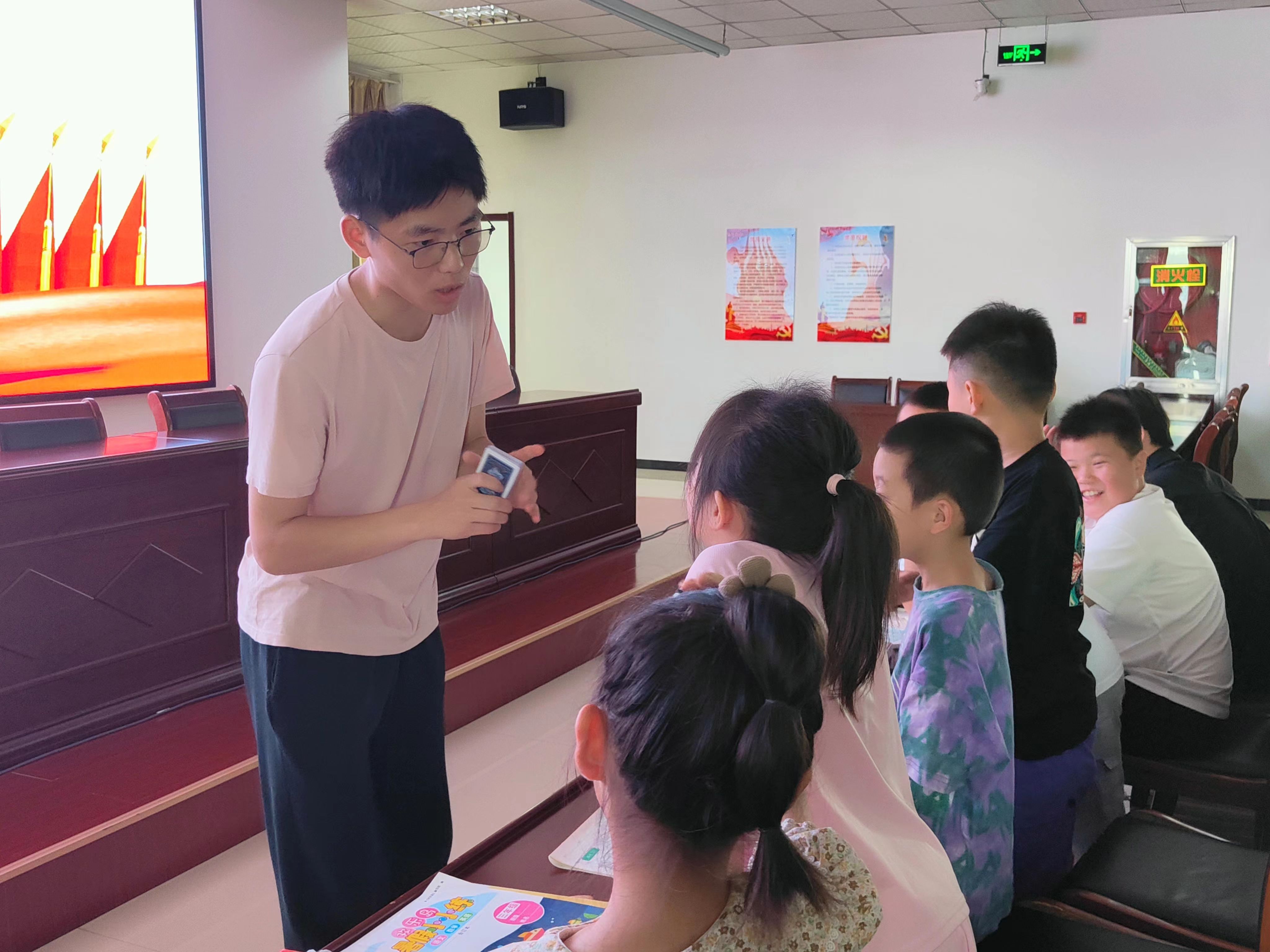 7月15日上午,由一群充满爱心与热情的支教团成员组成的“爱心使者”团队,前往新区街道驿城村党群服务中心,为当地的暑期托管儿童带去了丰富多彩的暑期爱心小课堂,以实际行动关爱孩子们的健康成长。