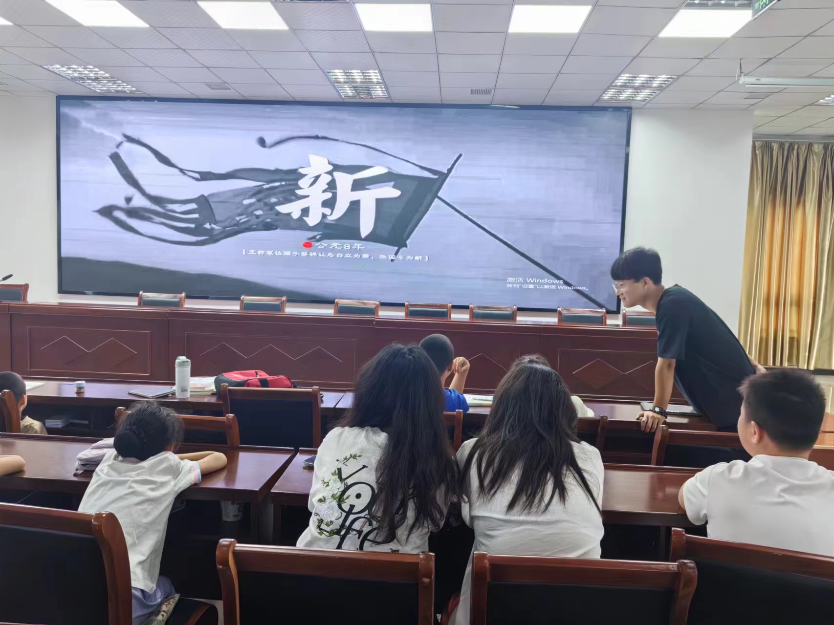上午时段,小课堂以“穿越千年,探寻中华传统文化”为主题拉开序幕。支教团成员牛俊昊巧妙运用纪录片这一媒介,将中华五千年文明的璀璨篇章以生动直观的方式展现在小朋友们面前。从远古的文明曙光到近现代的辉煌成就,每个朝代的特点与风俗习惯在牛俊昊的讲述下变得栩栩如生,激发了小朋友们对传统文化的浓厚兴趣与探索欲望。面对小朋友们充满好奇的问题,支教团的成员们耐心解答,用知识的钥匙为他们打开了一扇通往历史深处的大门。