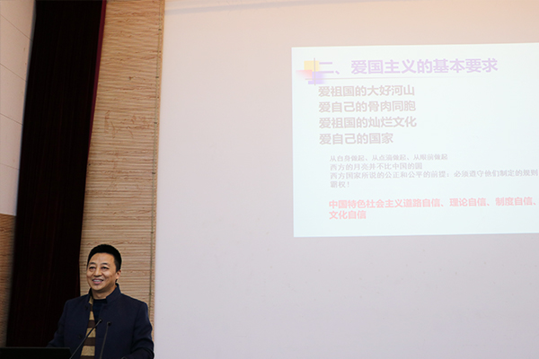 会上,王忠宾教授从爱国主义的内涵、爱国主义的基本要求、理性爱国、新时代大学生担当四个方面,为在场同学带来了一场精彩的讲座。他通过古代爱国主义和近现代爱国主义,深刻地剖析了现代爱国主义内涵,以导弹之父钱学森等人的奋斗经历告诉在场同学要坚守民族自尊心和民族自信心。他将现代爱国主义简要概括为爱祖国的大好河山、爱自己的骨肉同胞、爱祖国的灿烂文化、爱自己的国家。身为当代大学生,需要从我做起,从身边小事做起,爱舍友、尊重师长。当代大学生应当学会理性爱国,拥有客观的判断能力,学会思考问题和分析问题,使自己的行为真正有利于国家有序、健康、稳定的发展。