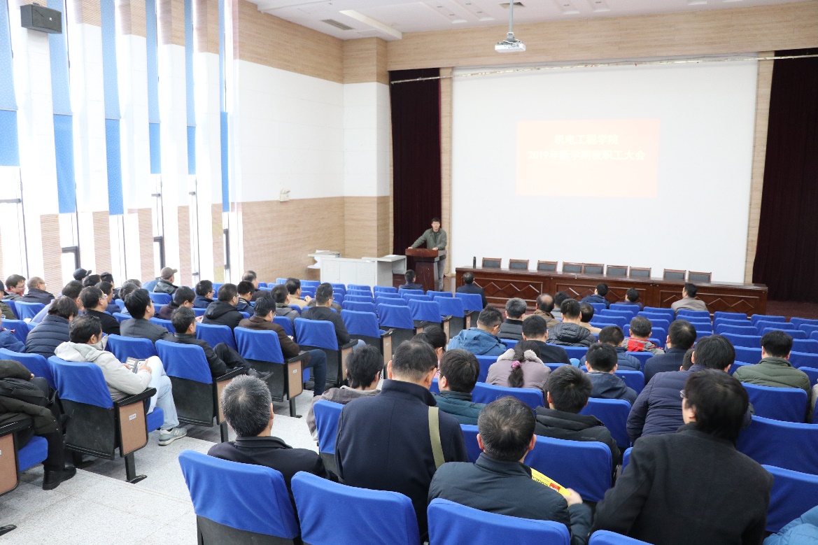 学院执行院长王忠宾首先总结了学院2018年的工作情况。他表示,在全体教职工的共同努力下,2018年,学院在人才培养、师资队伍、专业建设、学科建设、教学工作、科学研究、学生工作、实验室建设、管理工作等方面均取得了突出的成绩,但同时也在高水平师资队伍建设、高水平科研成果凝练等方面存在不足。针对学校建设能源资源特色世界一流大学总体目标规划,王忠宾院长强调,2019年,学院也面临高端人才引进和培养、新一轮学科评估争先进位等严峻形势,将进一步做好师资队伍建设、重大重点项目培育、高水平科研平台申报、新工科建设、品牌专业验收等各项工作,同时积极配合学校做好110周年校庆系列活动,承办好“智能化装备与特种环境机器人”国际会议分会场会务工作,全面推进学院事业发展,严抓落实,确保各项工作取得实效。