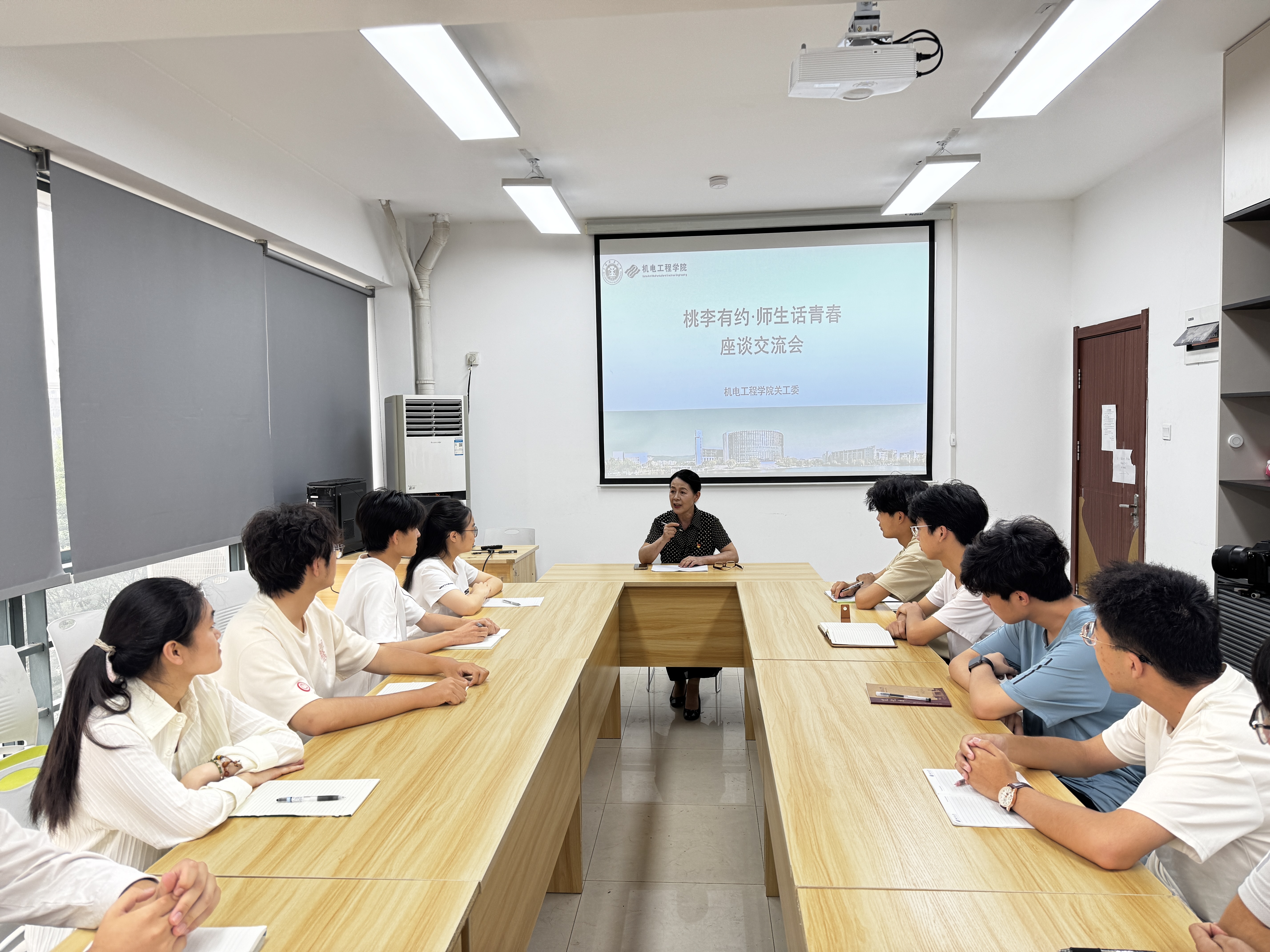 625日下午,黑料网 关工委于桃苑二号楼青春会客室举办“会客青春与你有约座谈。院关工委副主任江晓红、秘书长曹楠2024级辅导员李博及2024级入党积极分子代表参加了本次交流会