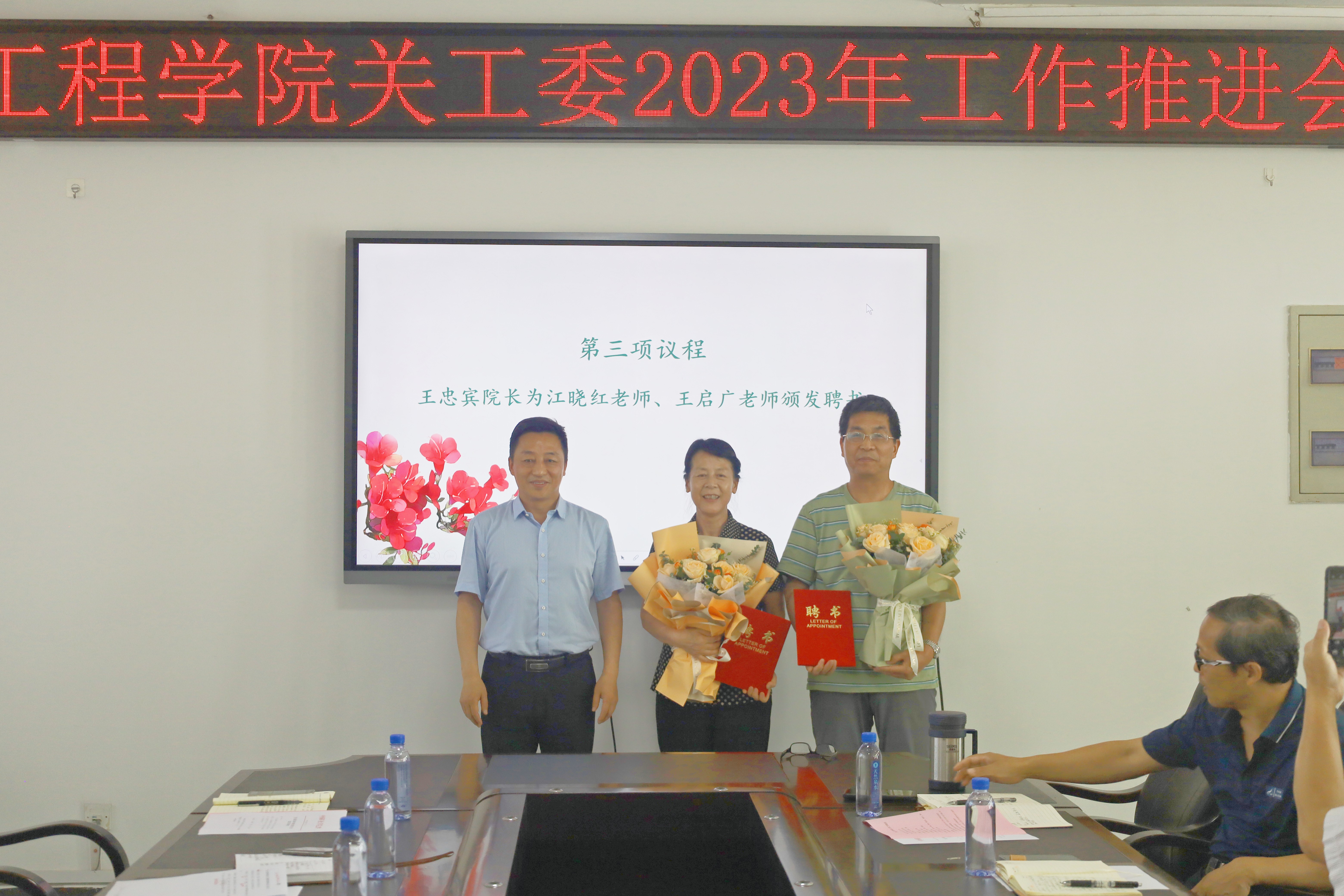 院党委副书记、关工委副主任王虎宣读学院关工委组织机构、人员分工以及《关于表彰2022年黑料网 关工委先进工作者的决定》。增补院长王忠宾、江苏省教学名师江晓红为院关工委副主任,机电退休党支部书记王启广为院关工委委员,授予刘圣汉、张永馨、江晓红、洪从华、梁佳卉2022年黑料网 关工委先进工作者荣誉称号。江晓红、王启广两位老师做简要发言,感谢学院党委及关工委的信任与关爱,将继续发挥余热,努力做好关心下一代工作。