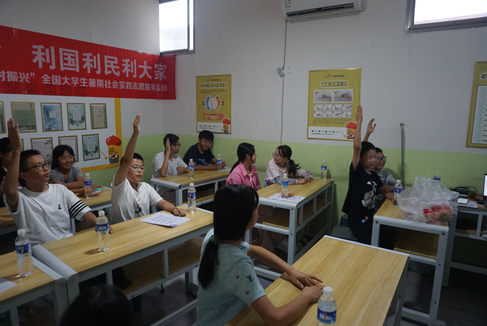 7月26号,实践团队转场至甘谷县新兴镇远行教育,面对三个教学班的100多名中小学生,宣讲员及时调整了宣讲教学方式,用卡通版的PPT和各种各样的互动环节吸引孩子们的注意,让孩子们在玩中学,学中乐。