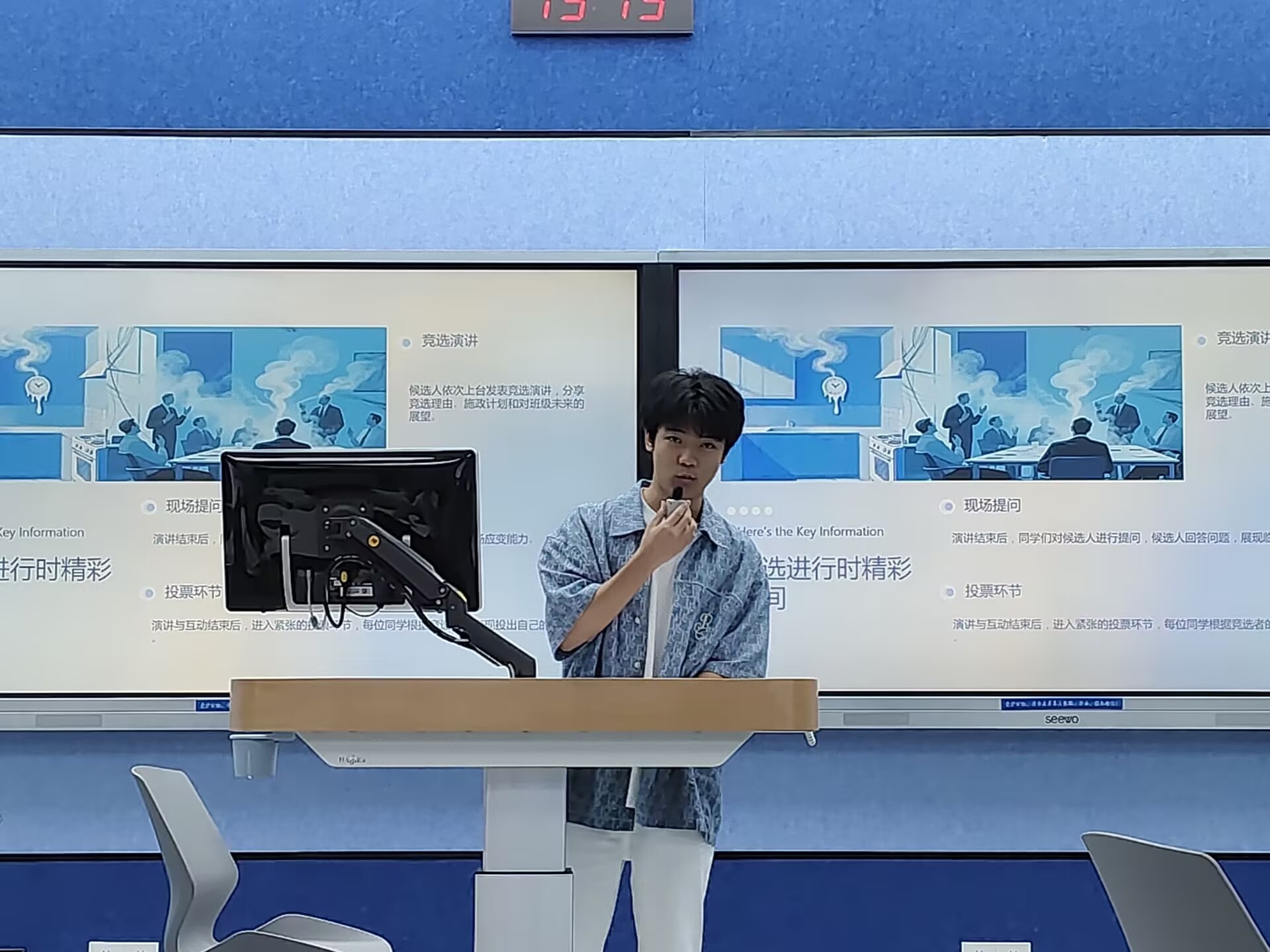 接着,现任班委依次总结班级事务。班长陈忠良回顾上学期班级活动组织情况,指出活动参与度有待提升;学习委员陶欣悦分析学业成绩,提出加强学习互助的建议;生活委员李中瀚汇报班级生活保障工作,强调了宿舍卫生改进的重要性。通过班委总结,同学们全面了解班级发展状况,也为后续工作提供参考。