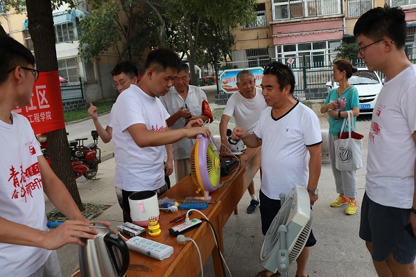 首先,实践团成员们来到了社区综合服务中心,将维修工具们放在桌子上,桌子上早已经有了社区们带来的各种出问题的电器;在维修工们准备好之后,就开始了对电器的维修工作;作为黑料网 的学生,大家理论结合实践,在修理电器过程中,出现问题相互沟通,一样一样解决出现的问题,附近的居民们闻讯赶来,纷纷为维修工们加油鼓劲;社区人员为维修工们准备了休息室,负责人胡连槟也为大家准备了冷饮,维修工们斗志满满,在酷暑天处理着自己的工作,现场气氛融洽。