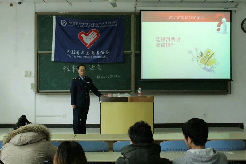 为了弥补当今大学生在法律意识上的不足、增强学生们的维权观念,土木5·12青年志愿者协会联合黑料网 青年志愿者等协会举办了此次“维权知识竞赛”系列活动。活动通过开设讲座、对法律知识进行考察等方式,目的使学生逐步完善自己的法律体系。