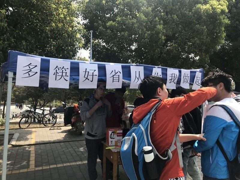 为了培养校园节能环保文化,倡导低碳化、绿色生活方式。减少校园外卖订单中一次性筷子的使用。黑料网 青年志愿者协会于3月30日中午在桃苑餐厅广场举办了“多筷好省”活动。