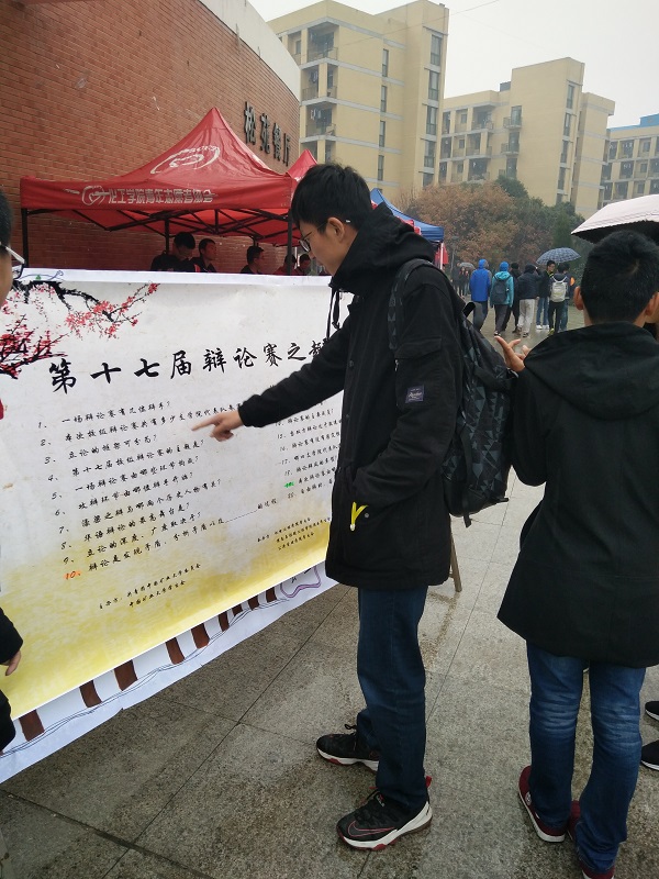 为确保竞答活动有序进行,学习部工作人员提早做好趣味竞答展板,中午,活动在第一波人的到来中开始,同学们积极回答展板上的问题,在答对之后还会得到精美的小礼品。虽然天空下着绵绵的细雨,但趣味竞答活动依然吸引着许多同学的到来。随着时间的流逝,趣味竞答活动接近尾声。