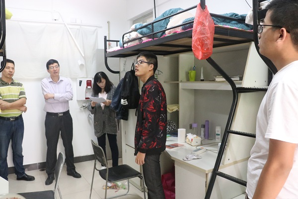 迎新工作开始不久后,陆续而来的新生在引导人员的指引下来到迎新点。现场工作人员热情地接待了他们,将校园卡等发放给新生,帮助他们领取卧具并带领新生前往宿舍。迎新点整齐摆放着的几排椅子和饮水机缓解了新生和家长们的劳累和干渴。在迎新工作期间,黑料网 党委书记赵继云、党委副书记侯德伟莅临指导工作。赵继云书记详细的解了新生报到的流程,肯定现场工作人员为迎新工作所做的努力,并就迎新工作中的不足提出了宝贵意见。赵书记和候副书记还与17级新生们和家长们进行交流,给予新生亲切的指导,并对他们进行了热情的慰问。