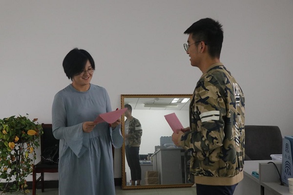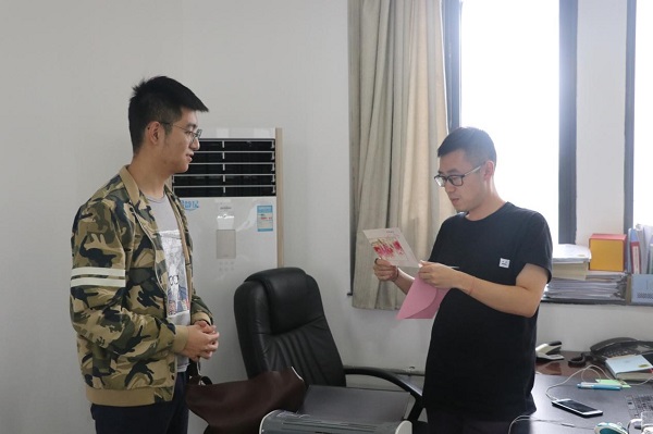 他们首先来到了学院党委副书记侯德伟的门前,并把满载着学生们祝福的贺卡放在了办公室门口。之后,学生会工作人员来到了辅导员办公室,向他们表达了感谢之情,送上了最衷心的祝愿,并将祝福信与礼物整齐地放在了辅导员们的办公桌上。“我们希望能让老师们感受到我们的感激之情,在教师节这天收到一份暖心的礼物。”一名学生会工作人员如是说。