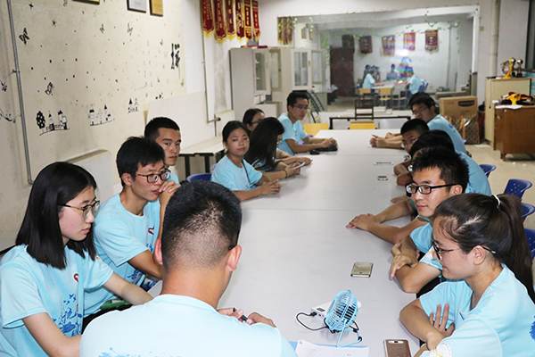 晚上8时正,在实践团全体成员到达会议地点后,姚永伦宣布会议开始。首先,姚永伦带领大家整体回顾了一周以来实践团做出的努力,随后对每个环节存在的问题进行了详细地讨论,团队成员积极地发表自己的意见。随后,姚永伦向大家安排了工作总结、物品回收、报账、宣传等一系列后期工作,并邀请团队成员轮流发表了工作总结。团队成员表示本次暑期社会实践十分有锻炼意义,每一个人都得到了充分锻炼,通过暑期社会实践增加了与社会地接触,认识到了更多的人,得到了更多的锻炼。大家同时表示希望在开学之后实践团成员之间能有更多地接触与交流,加强在工作上的合作。最后,姚永伦整体总结了本次活动,并向大家一周辛苦的付出表示深深的感谢。