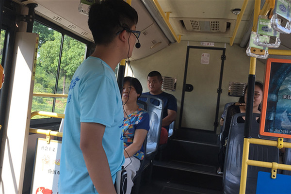 机电学院“垃圾分类调查”暑期实践团进行公交车宣传