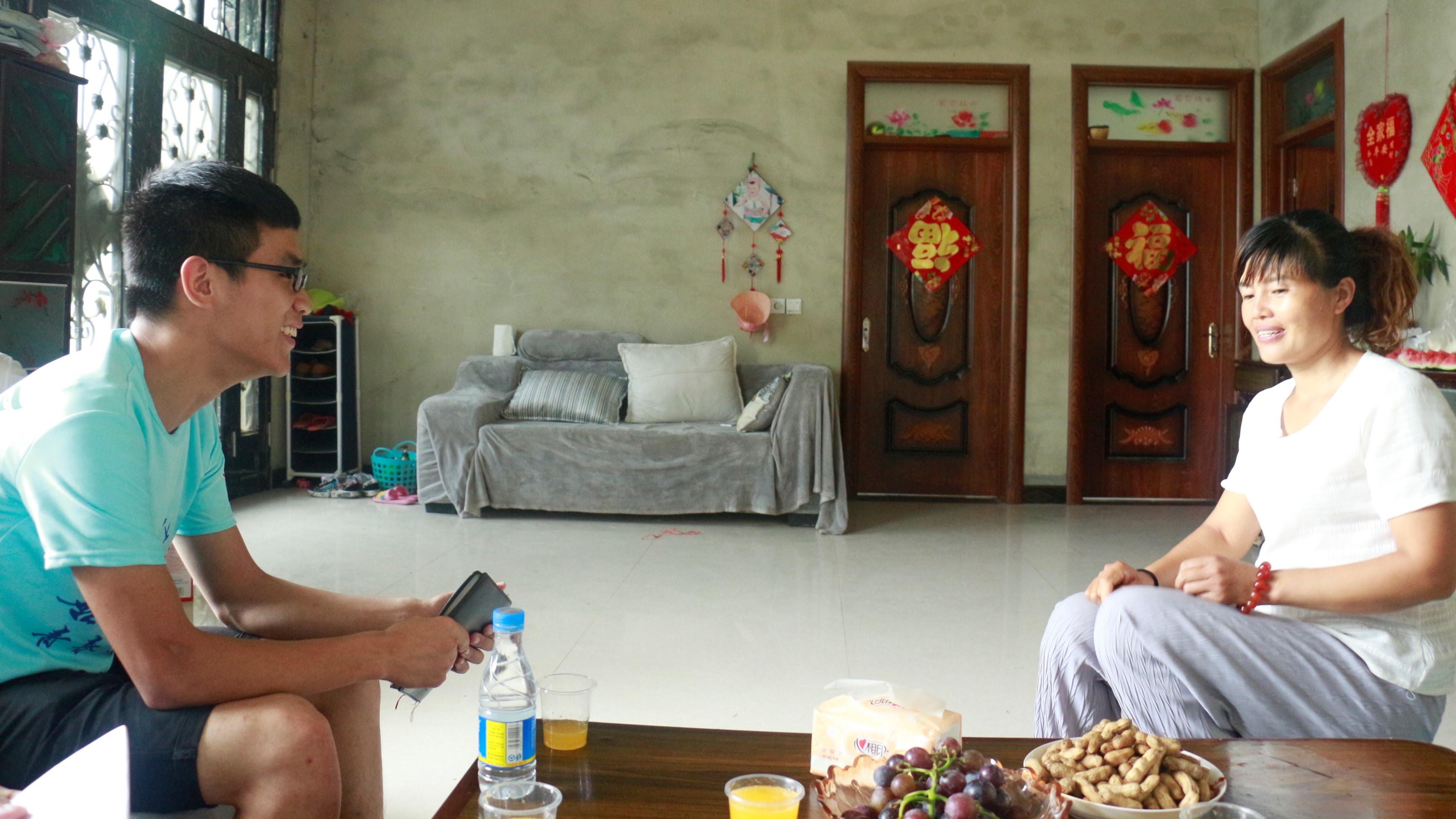随后,他们来到了张叔家。在交谈中,同学们首先询问了当地居民的家庭情况。张阿姨告诉他们:“张庄寨的常住人员以老人、中年妇女以及幼儿为主,中青年们大多都外出务工了。”接着,张阿姨又给他们介绍了当地的产业结构和收入来源,告诉他们:因留下来的大部分是中老年人,所以劳动力较为欠缺。居民们的生活以照顾老人及孩子为主,同时进行一些耕作以补充家用。