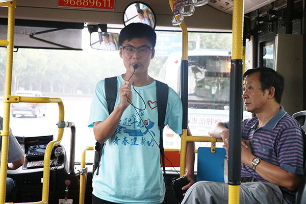 机电学院与化工学院暑期实践团合作进行公交车宣讲