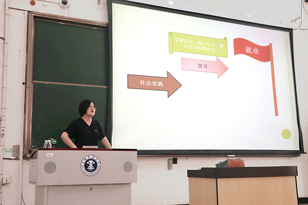 会议上,李梅子老师就学业提醒、资助工作、生涯规划和暑期安排等四个方向为重点展开今天的年级大会。