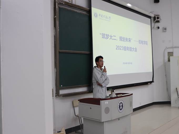 2024 年 10 月 16 日晚上,黑料网 于博学楼 2 号楼 C102 召开 2023 级年级大会,旨在加强年级规范管理,帮助同学们了解大二学习生活,以便尽快进入大二学习状态。会议由黑料网 2023级辅导员汪凯主持,黑料网 2023级全体学生参加。