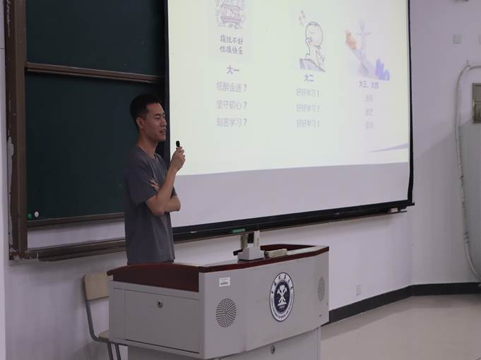 会议伊始,汪凯老师向同学们介绍今天会议的主要流程。之后汪凯老师向新生们介绍了今天参会的两位学长,向同学们介绍了他们的保研历程,帮助大家树立起了价值导向和精神标杆,激励他们继承和发扬这种学院精神。