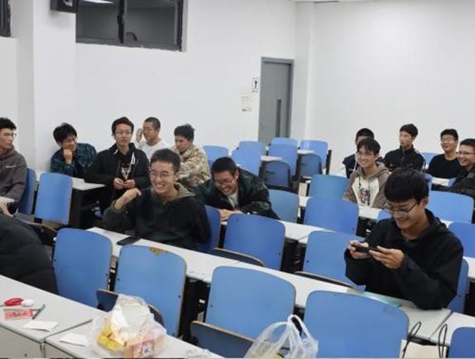 本次班会包含两个环节。首先,张振宇同学就心理健康主题给同学们做了简短而深刻的演讲,希望同学们在大学能够保持愉快心情,健康成长。其次开展了趣味游戏,同学们通过抽签的方式领取小零食,并分为若干小组,进行了“你画我猜”、“谁是卧底”等小游戏。在游戏过程中,同学们积极交流,分享自己的想法,小组成员积极配合,共同合作,教室里洋溢着轻松愉快的气息,同学们也增进了彼此之间的友谊。